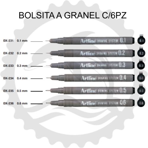 ARTLINE ESTILOGRAFO DESECHABLE SURTIDO 6PZ BLISTER PTO 0.1 - 0.2 - 0.3 - 0.4 - 0.5 - 0.6 - [ almacen 2 ]