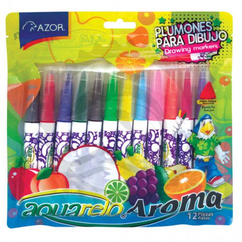 AZOR PLUMONES AGUA AQUARELO BLISTER C/AROMA DELGADO C/12PZ - [ almacen 1 ]