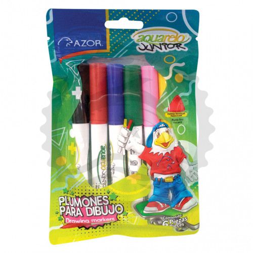 AZOR PLUMONES AGUA AQUARELO BLISTER DELGADO C/6PZ - [ almacen 1 ]