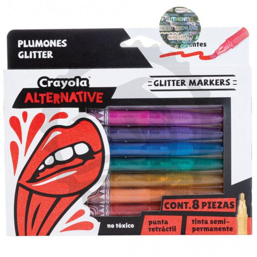 CRAYOLA PLUMONES SEMI-PERMANENTE ALTERNATIVE GLITTER MARKERS C/8PZ - [ almacen 2 ]