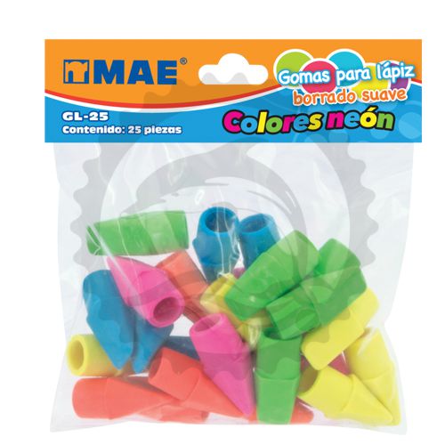 MAE GOMA CAPUCHON PARA LAPIZ BL C/25PZ COLORES NEON - [ almacen 1 ]