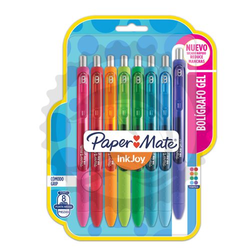 PAPERMATE BOLIGRAFO DE GEL KILOMETRICO 1.0 MM INK JOY SET C/8PZ RETRACTIL - [ almacen 2 ]