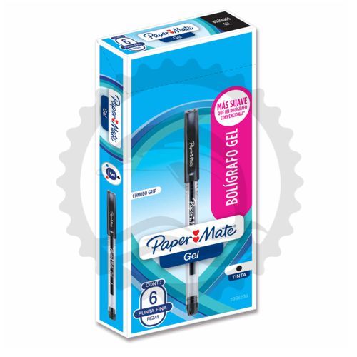 PAPERMATE BOLIGRAFO DE GEL STICK 1.0 MM C/GRIP C/6PZ - [ almacen 2 ]