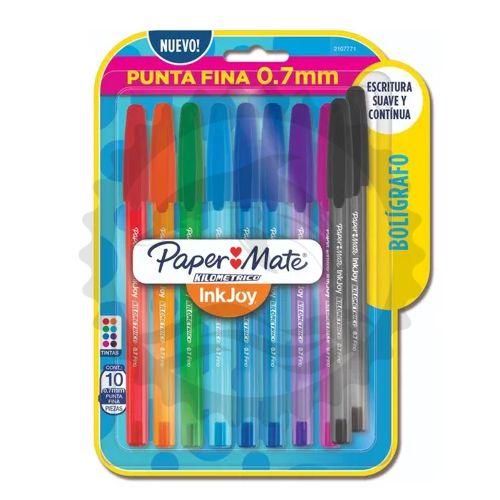 PAPERMATE BOLIGRAFO KILOMETRICO 0.7 MM SET C/10PZ FINO - [ almacen 2 ]