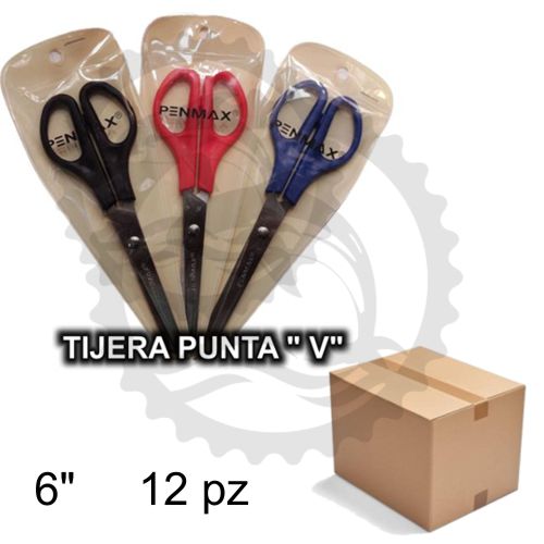 PENMAX TIJERA OFICINA PTA V 6.5" FUNDA BEIGE CAJA C/12PZ - [ almacen 1 ]