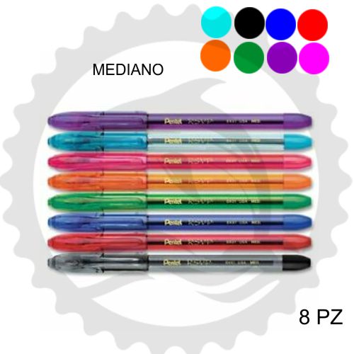 PENTEL BOLIGRAFO TAPON RSVP MEDIANO AHUMADO 8PZ SURTIDAS - [ almacen 2 ]