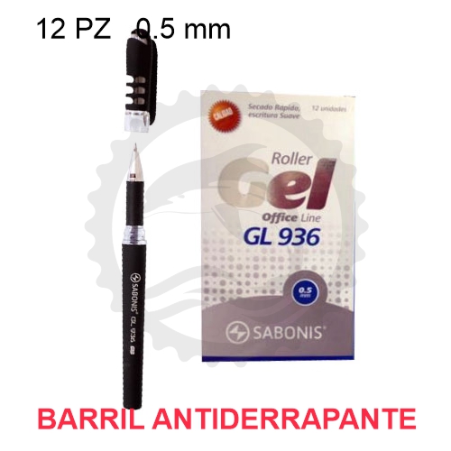 SABONIS BOLIGRAFO DE GEL OFFICE LINE BARRIL NEGRO CAUCHO 0.5 MM CAJA C/12PZ - [ almacen 1 ]