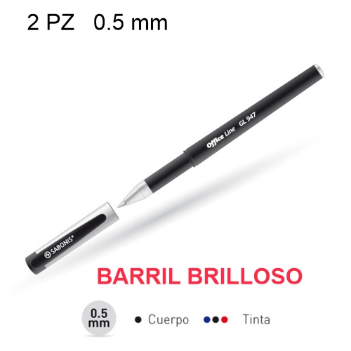 SABONIS BOLIGRAFO DE GEL OFFICE LINE BARRIL NEGRO LISO 0.5 MM C/2PZ - [ almacen 1 ]