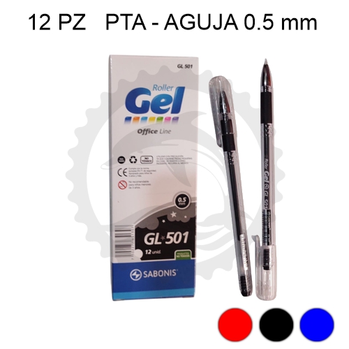 SABONIS BOLIGRAFO DE GEL OFFICE LINE CRISTAL C/GRIP 0.5 MM PTA AGUJA CAJA C/12PZ - [ almacen 1 ]