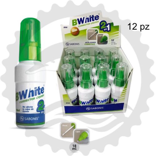 SABONIS CORRECTOR LIQUIDO BWHITE 18 ML DOBLE FUNCION CAJA C/12PZ - [ almacen 1 ]