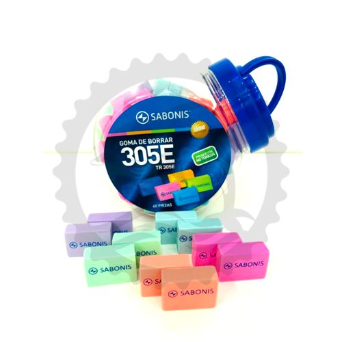 SABONIS GOMA MIGAJON CUADRADA BOTE C/60PZ COLORES SURTIDOS - [ almacen 1 ]
