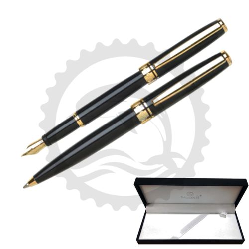 SABONIS JUEGO DE BOLIGRAFOS 2 PIEZAS MAS ESTUCHE VIVOS ORO/PLATA FUENTE + BOLIGRAFO - [ almacen 2 ]