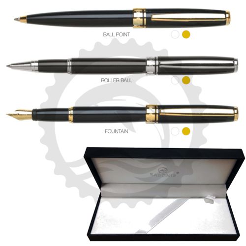 SABONIS JUEGO DE BOLIGRAFOS 3 PIEZAS MAS ESTUCHE AZUL/PLATA ROLLERBALL + FUENTE + BOLIGRAFO - [ almacen 2 ]