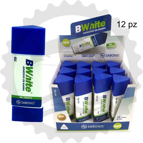 SABONIS LAPIZ ADHESIVO BARRA TRIANGULAR 25GR BWHITE CAJA C/12PZ - [ almacen 1 ]