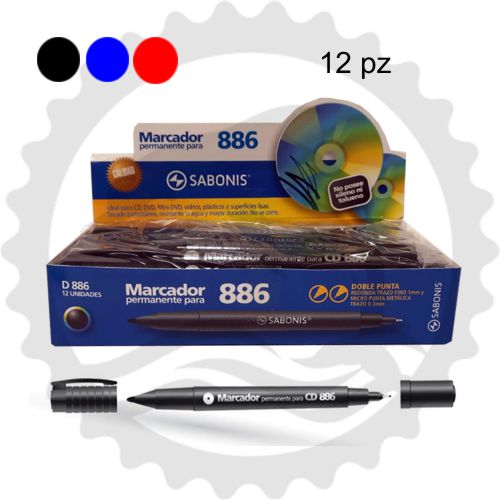 SABONIS MARCADOR PERMANENTE 886 DOBLE PUNTA CAJA C/12PZ - [ almacen 1 ]