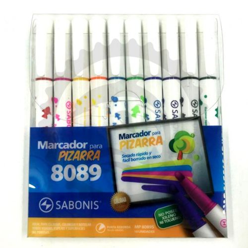 SABONIS MARCADOR PIZARRON PIZARRA SET C/10PZ DELGADO - [ almacen 1 ]