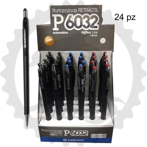 SABONIS PORTAMINAS BARRIL NEGRO CAUCHO 0.5 MM Y 0.7 MM CAJA C/24PZ - [ almacen 1 ]