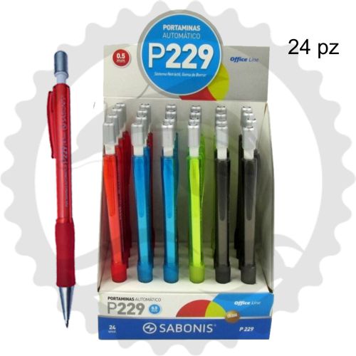 SABONIS PORTAMINAS BARRIL TRANS NEON C/GRIP 0.5 MM Y 0.7 MM CAJA C/24PZ - [ almacen 1 ]