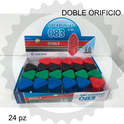SABONIS SACAPUNTAS 2 HOYOS NEW COLORS TRIANGULAR C/DEPOSITO CAJA C/24PZ - [ almacen 1 ]