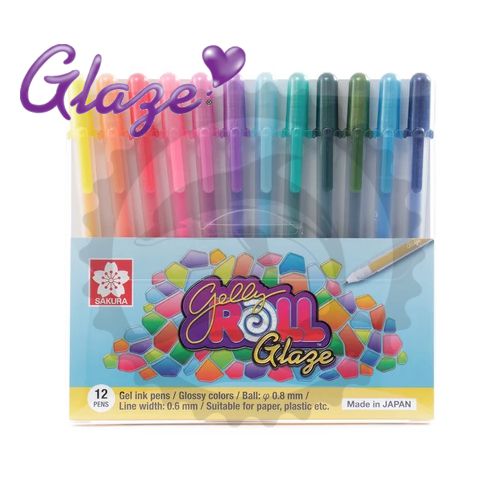 SAKURA BOLIGRAFO GEL TAPON GELLY ROLL GLAZE SET C/12PZ TINTA ESPECIAL - [ almacen 3 ]
