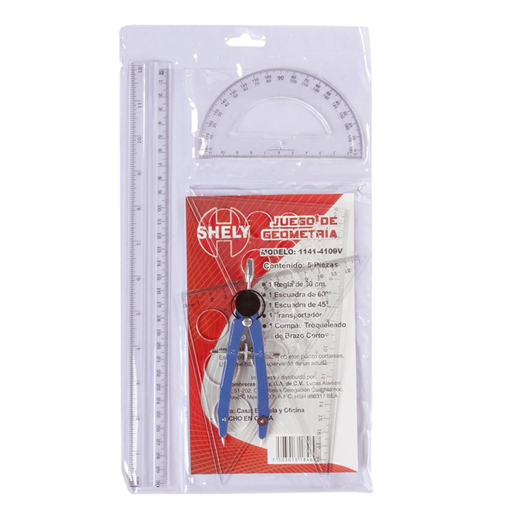 SHELY JUEGO DE GEOMETRIA TRADICIONAL PLASTICO TRANSPARENTE 5PZ CPS MET - [ almacen 1 ]
