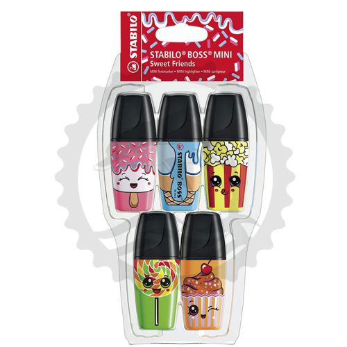 STABILO RESALTADOR CUADRADO BOSS SWEET FRIENDS SET C/5PZ MINI EDICION ESP - [ almacen 2 ]