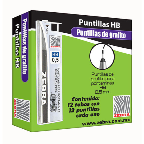 ZEBRA PUNTILLA GRAFITO HB 0.5MM C/12PZ - [ almacen 2 ]