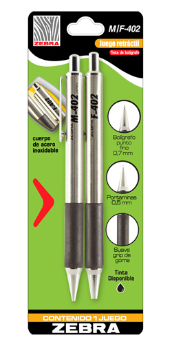 ZEBRA SET BOLIGRAFOS B+P F-402 BARRIL METALICO ESTUCHE - [ almacen 2 ]