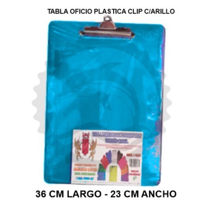 ACR TABLA PLASTICA SUJETAPAPEL CLIP C/ARILLO TRANSLUCIDO OFICIO - [ almacen 3 ]