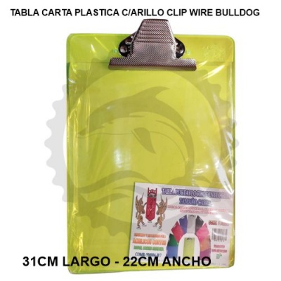 ACR TABLA PLASTICA SUJETAPAPEL CLIP C/ARILLO WIRE BULLDOG TRANSLUCIDO CARTA - [ almacen 4 ]