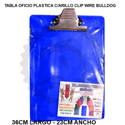 ACR TABLA PLASTICA SUJETAPAPEL CLIP C/ARILLO WIRE BULLDOG TRANSLUCIDO OFICIO - [ almacen 4 ]